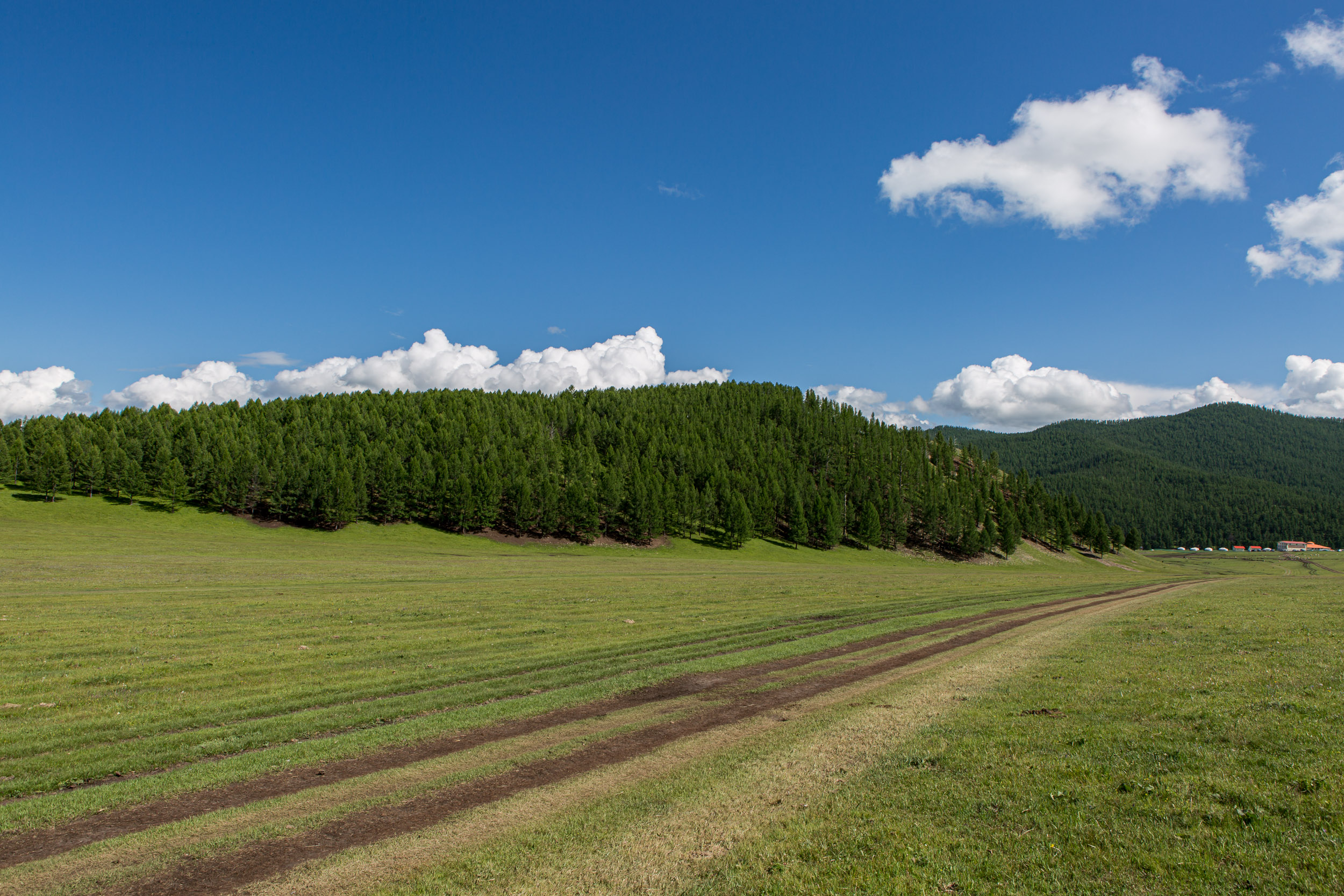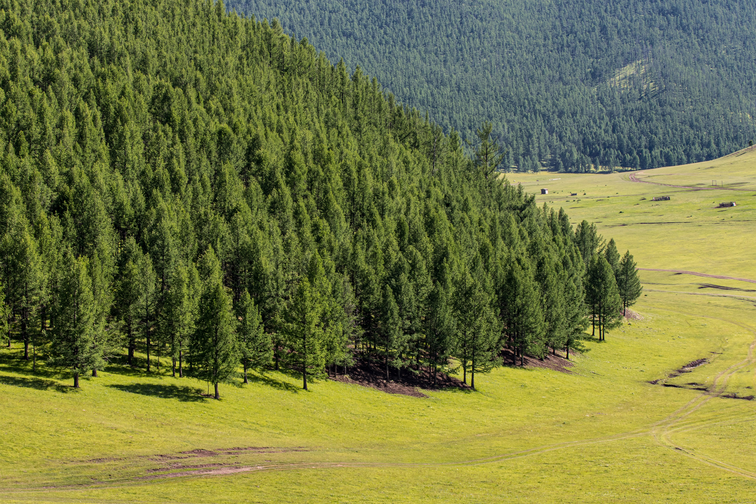Pine forests and geothermal waters in central Mongolia