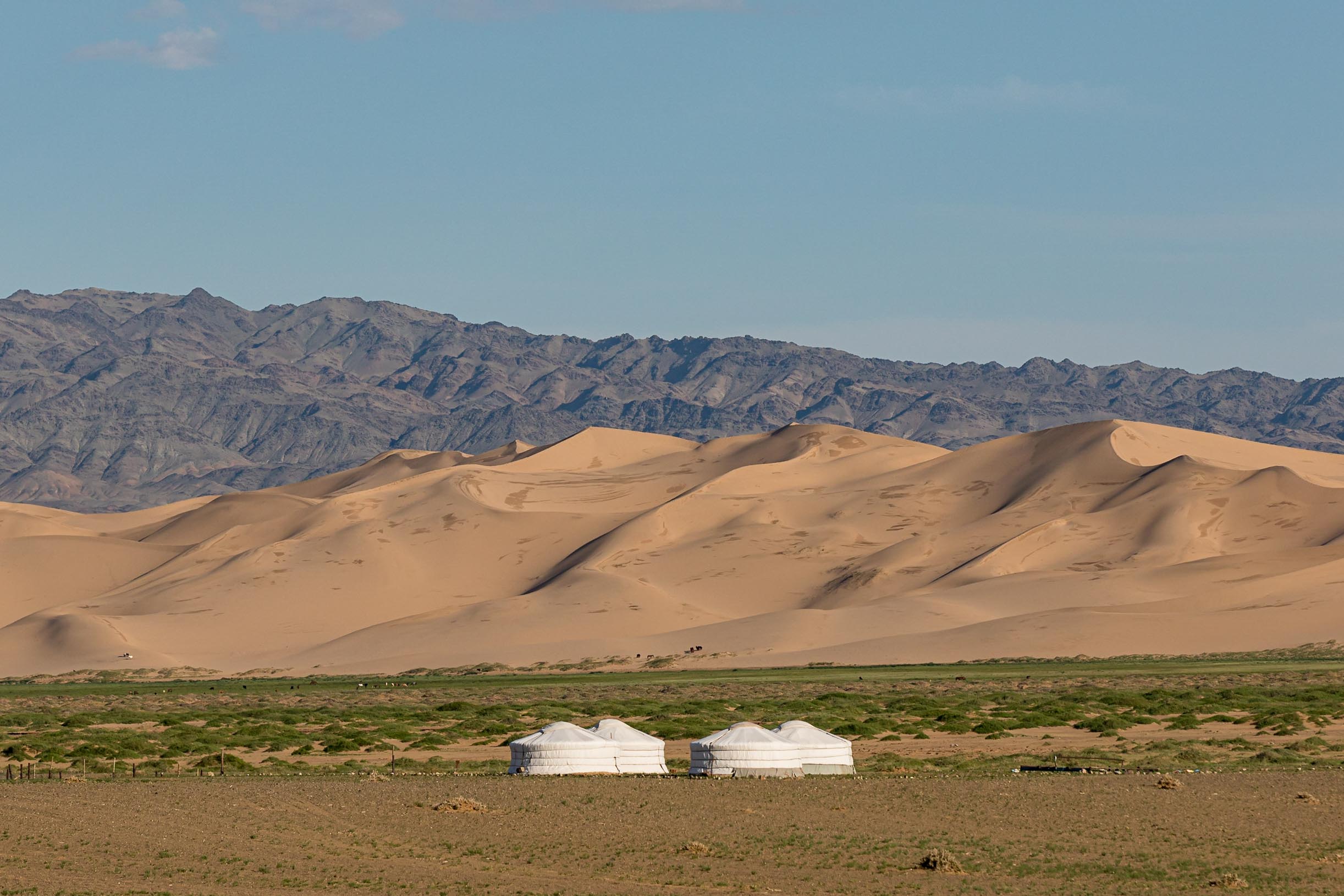 The towering dunes of Khongoryn Els stretch for over 100 kilometers along the edge of the Gobi Desert. This gallery captures the scale, movement and golden light of Mongolia’s “Singing Dunes,” as well as life along their remote desert edge. Read the full Khongoryn Els story for the complete experience.